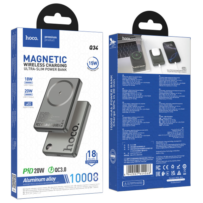 De Ce Să Alegi Hoco Q34? Dacă ești în căutarea unui power bank care să combine tehnologia MagSafe cu incarcarea rapida multi-port (PD/QC), Hoco Q34 este soluția completă. Este un accesoriu esential pentru utilizatorii de iPhone și de alte dispozitive moderne.