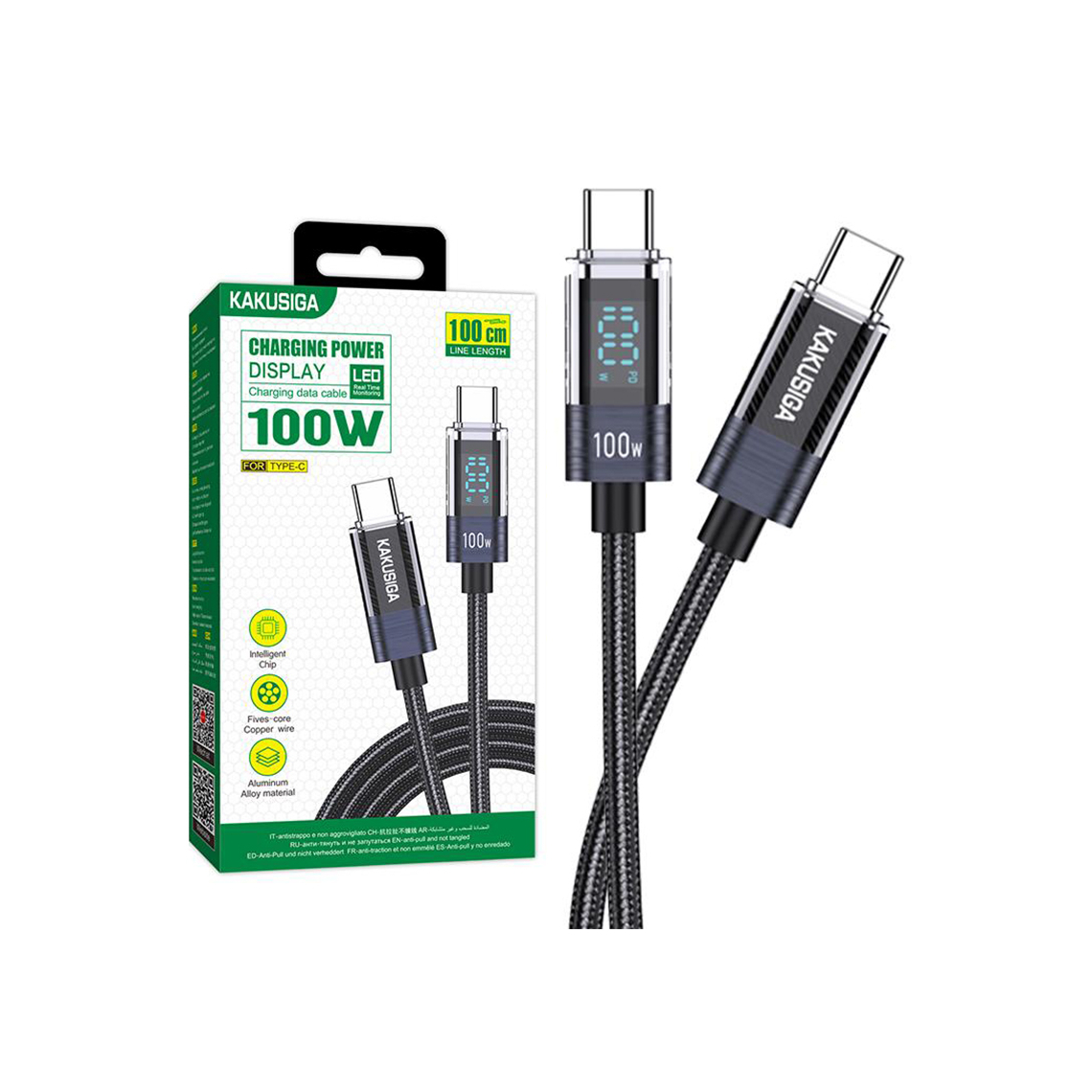 Titlu: Kaku (KSC-971) Cablu Date si Incarcare USB-C PD 100W, 1m Negru – Putere Maxima, Design Impletit si LED Indicator